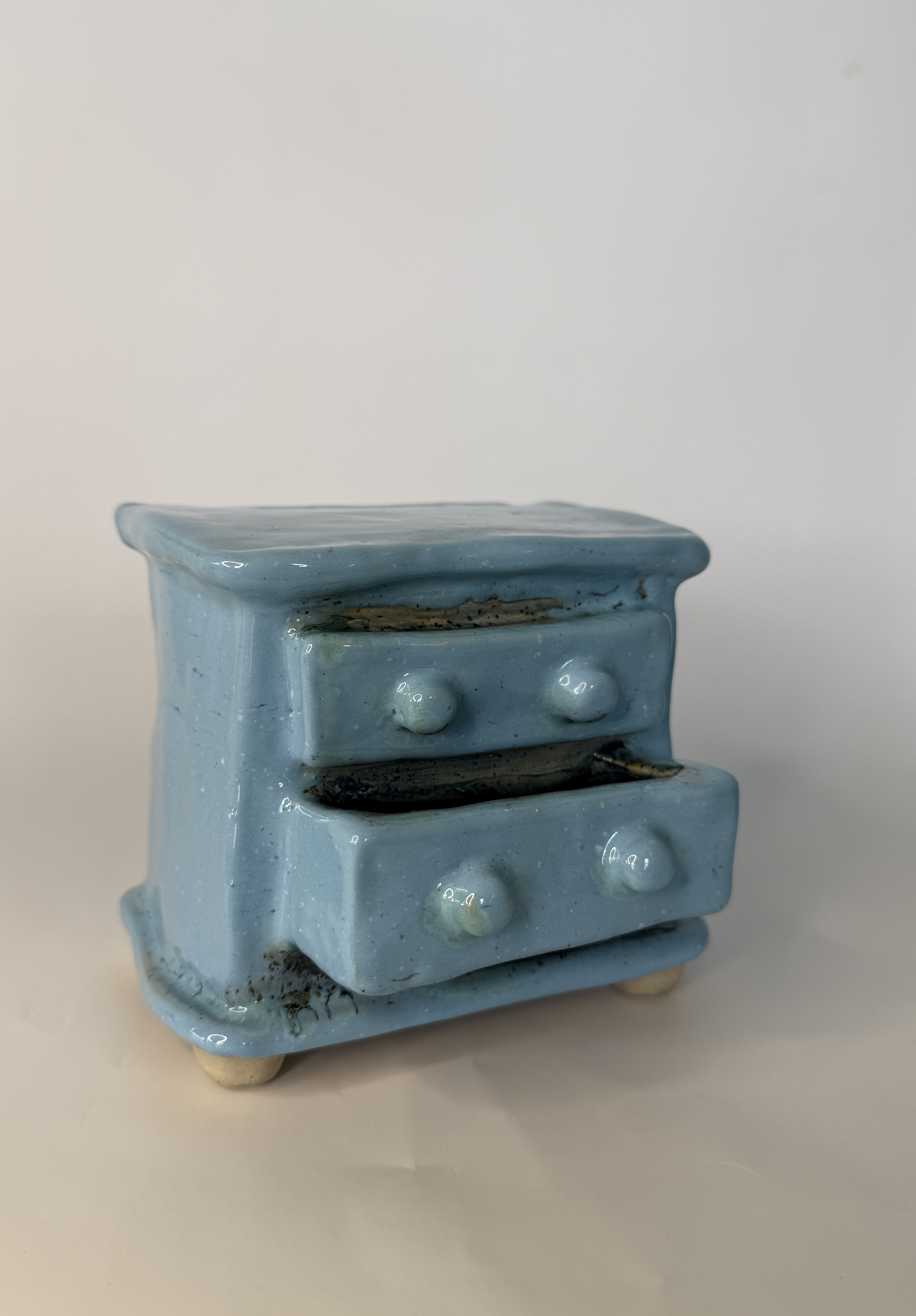 Blå kommode, glaseret stentøjsler, 10,5x12x10 cm, 2025 -