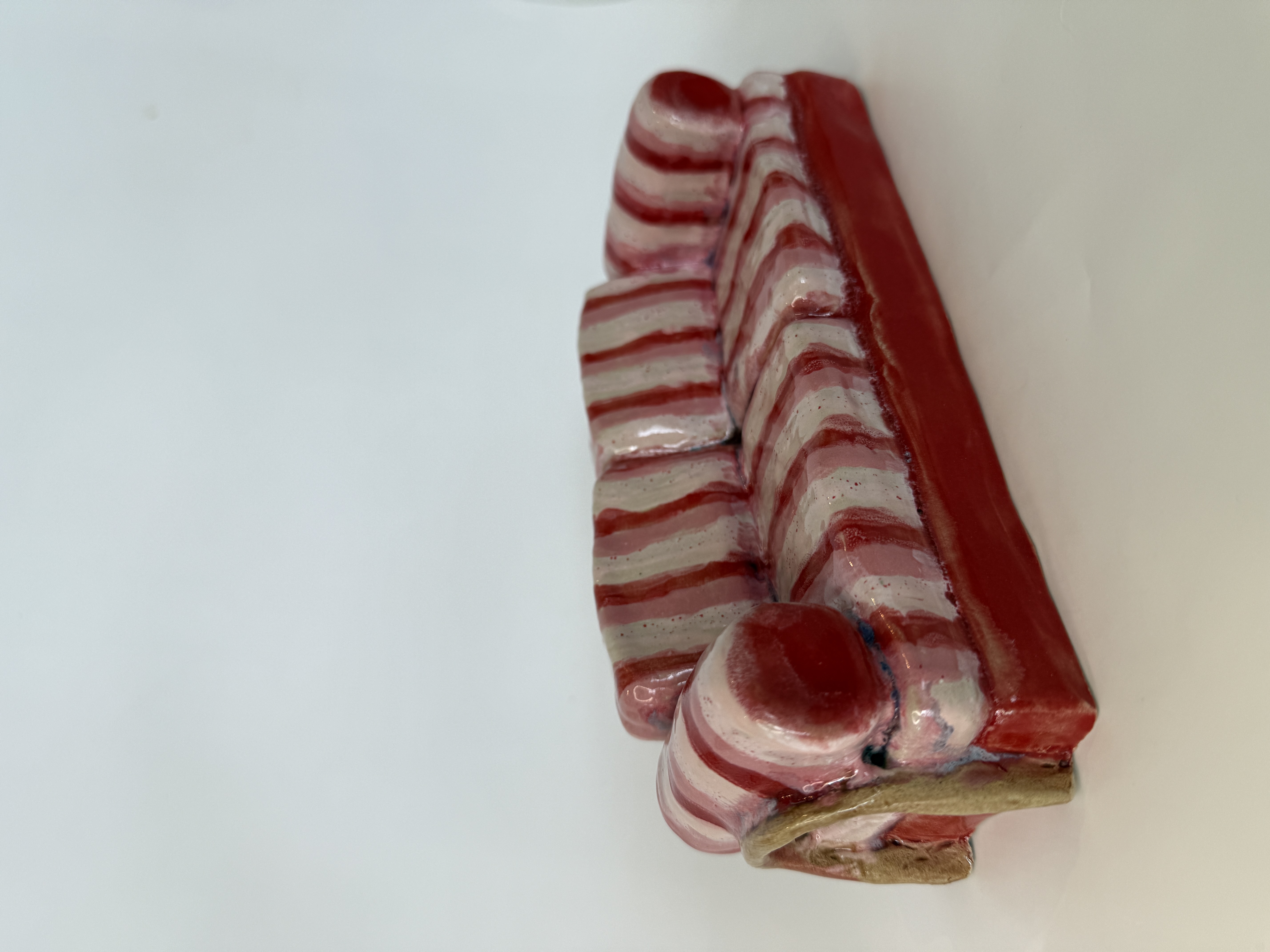 Stribet sofa, glaseret stentøjsler, 7x22x8 cm, 2025