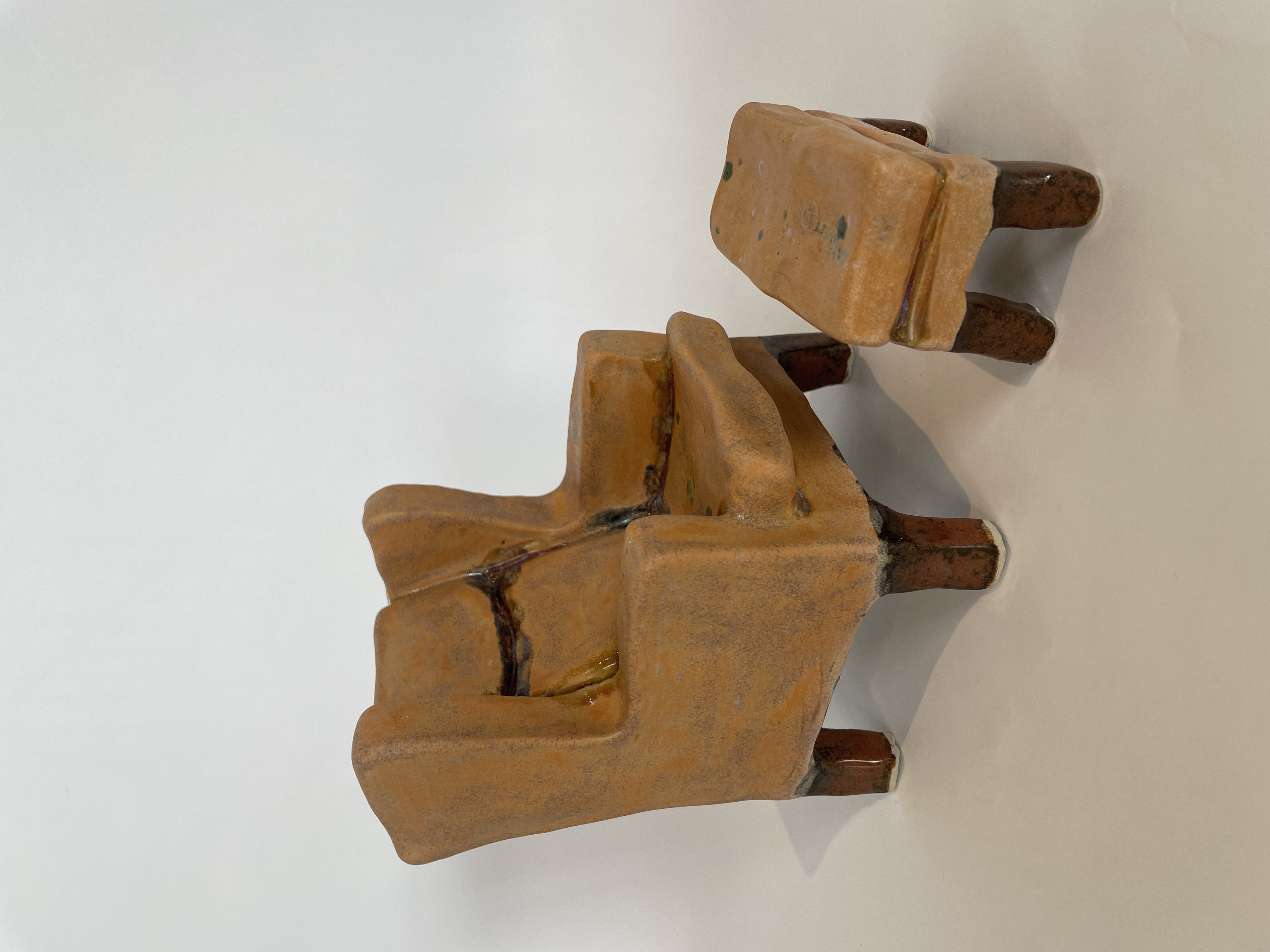 ORANGE LÆNESTOL, glaseret stentøjsler, H12 L11 D13 cm, 2024