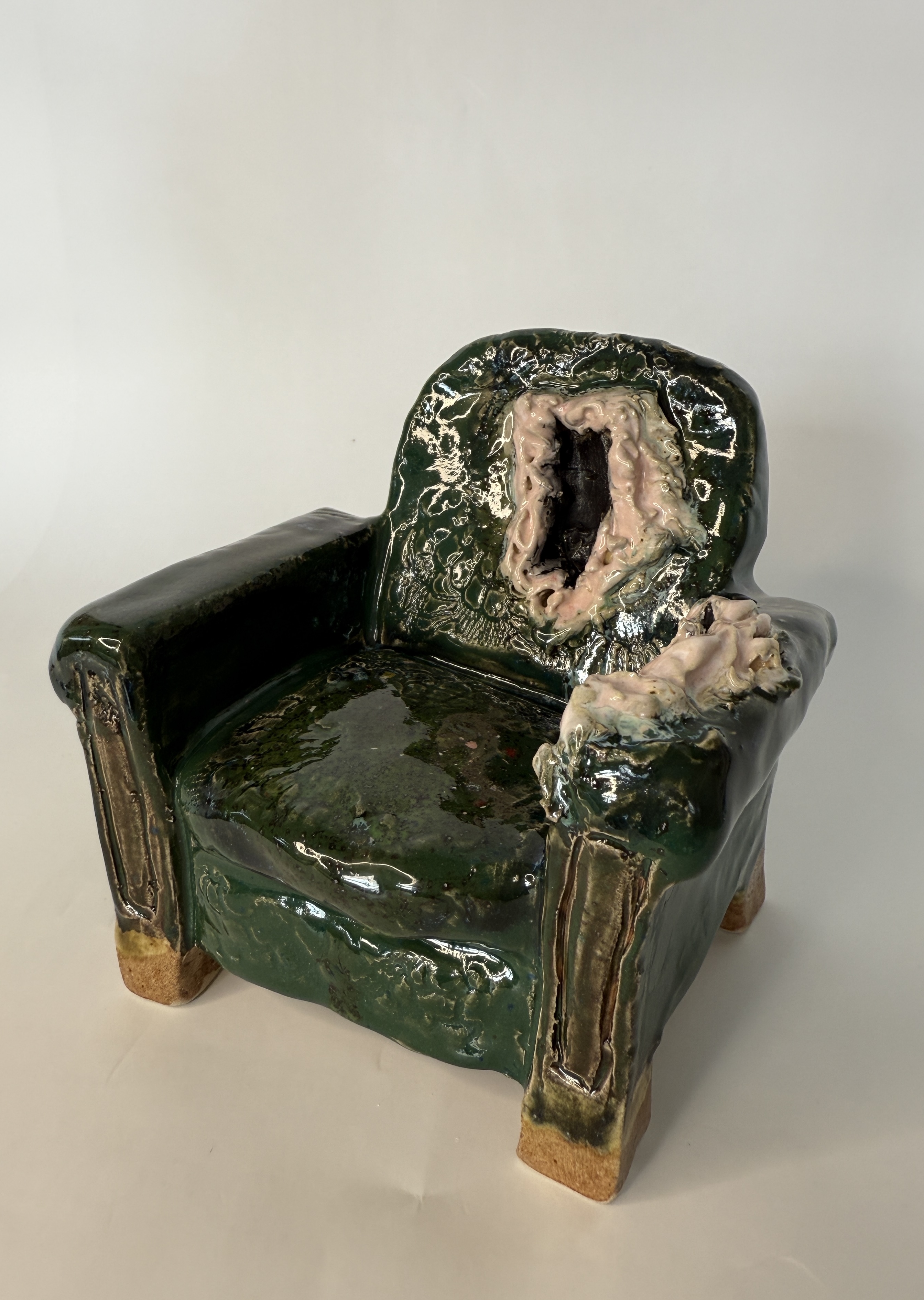 Hullet lænestol, glaseret stentøjsler, 12x11x9 cm, 2025 -