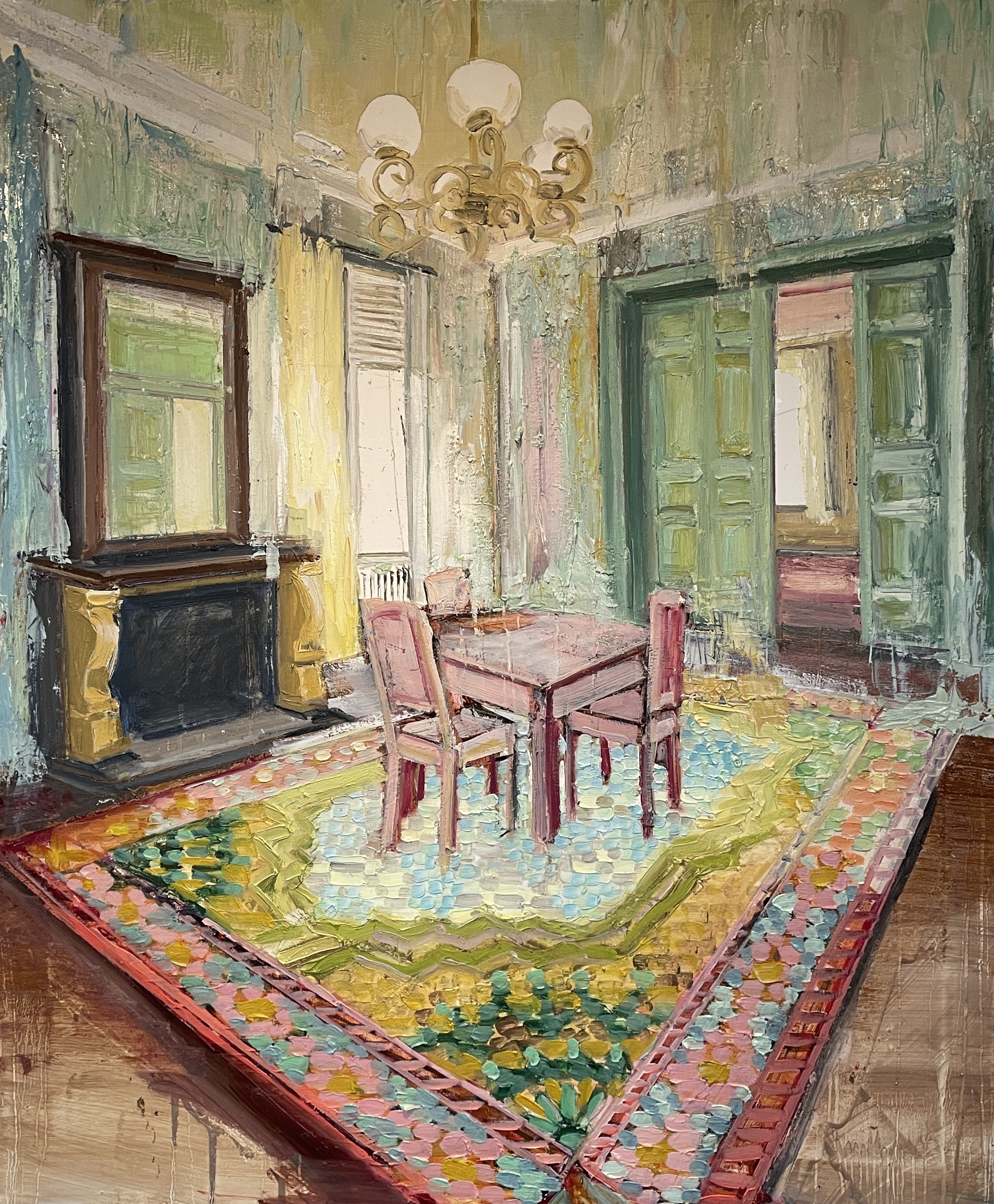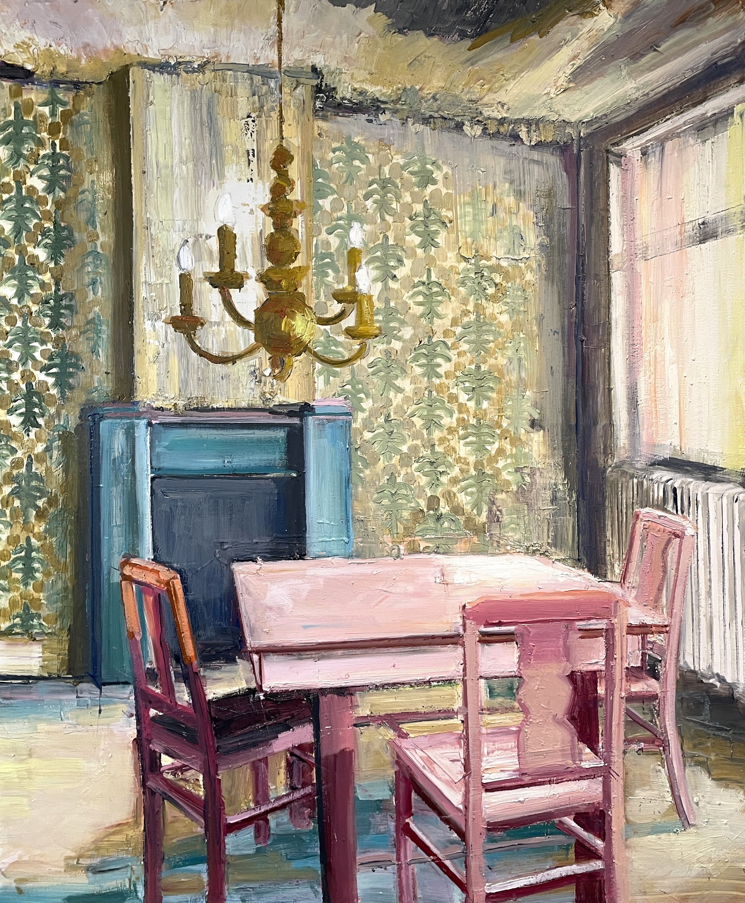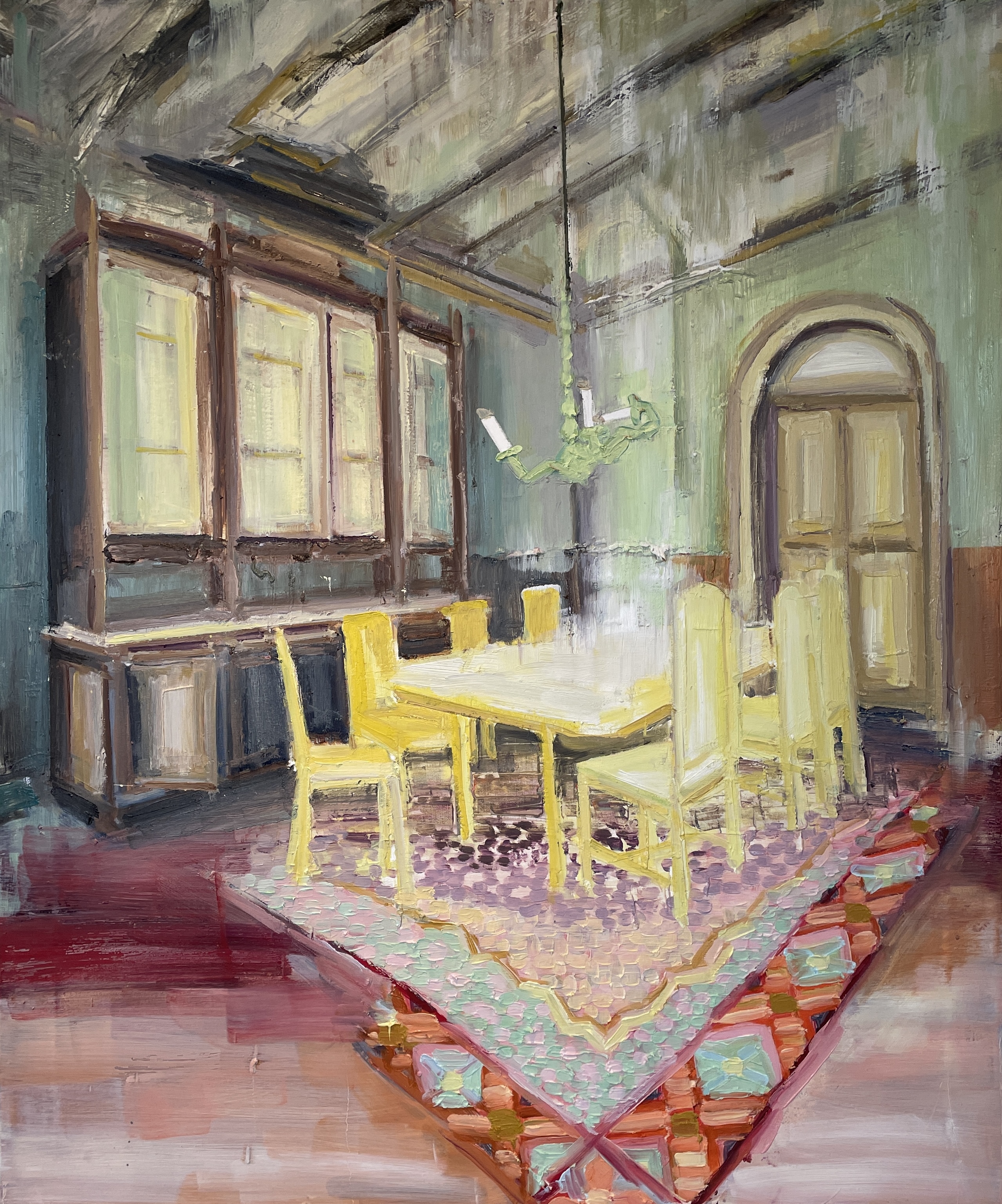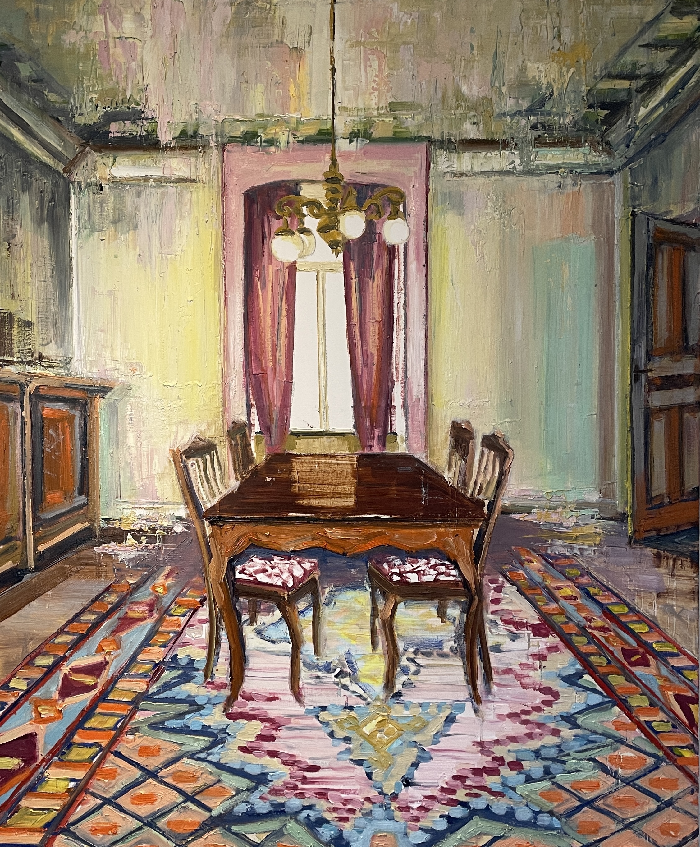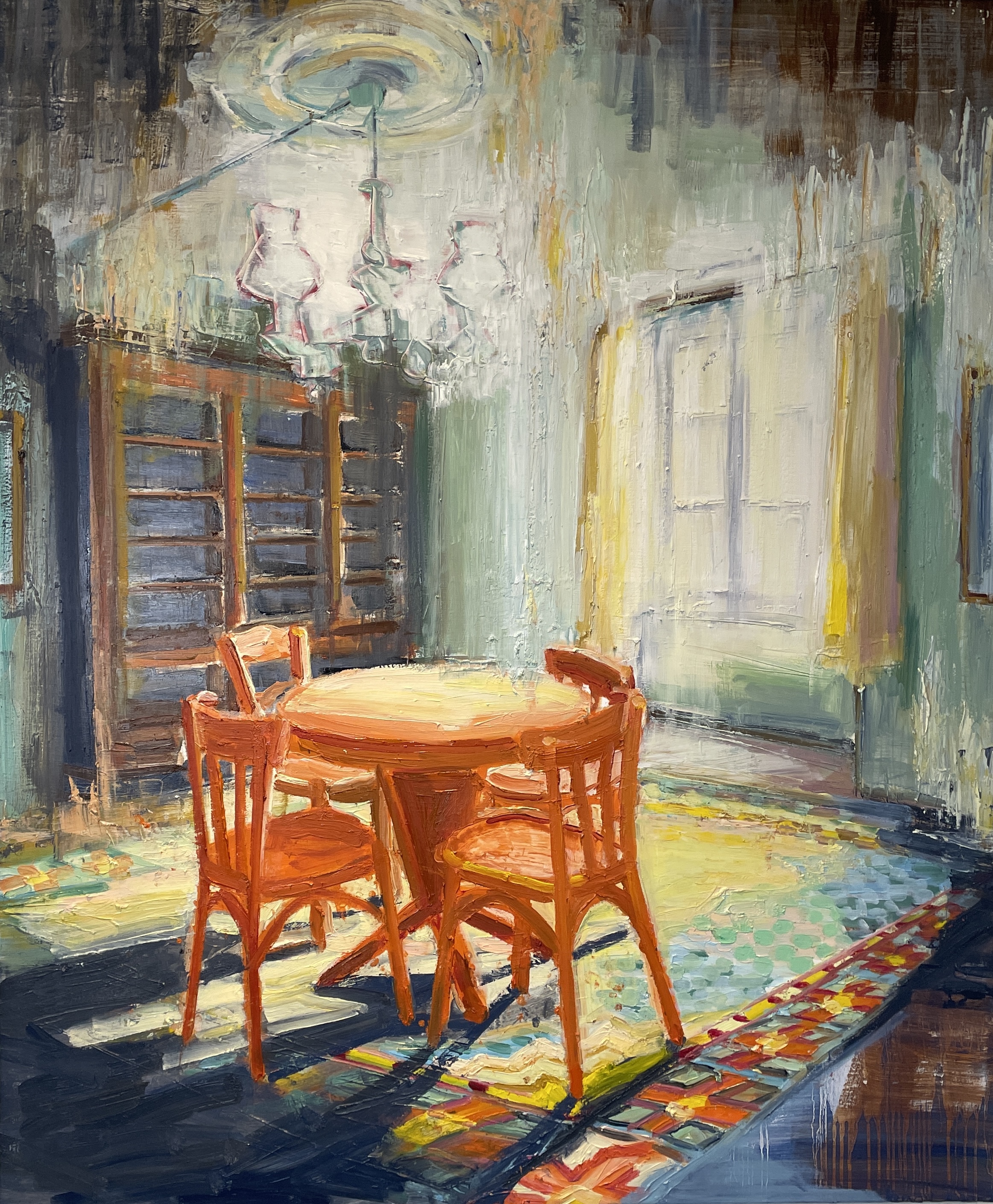 • THE COLOURFUL DINING ROOM, Olie på lærred, 120x100 cm, 2025