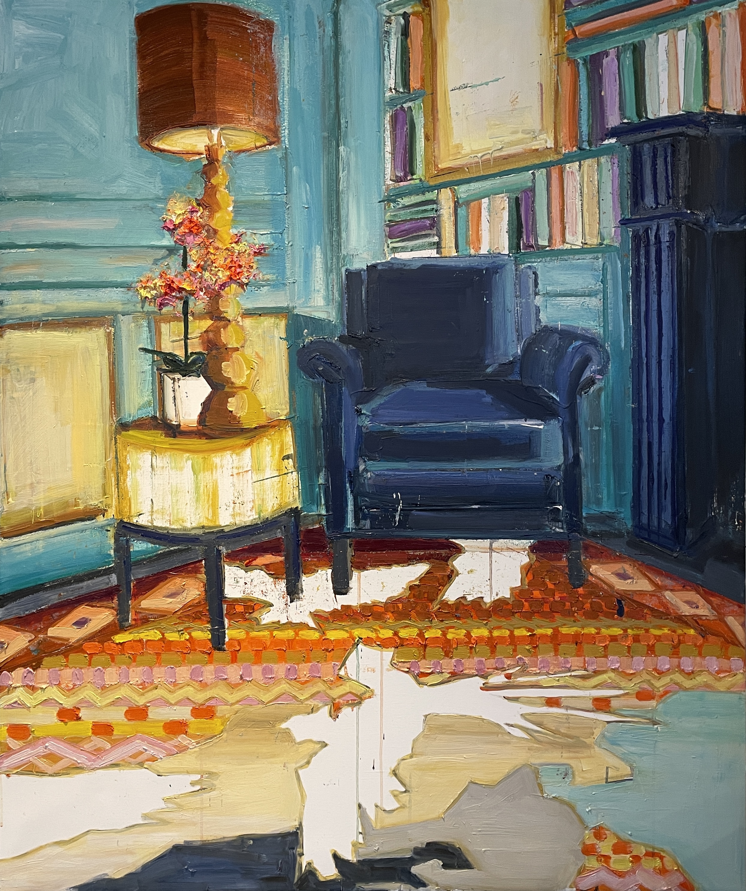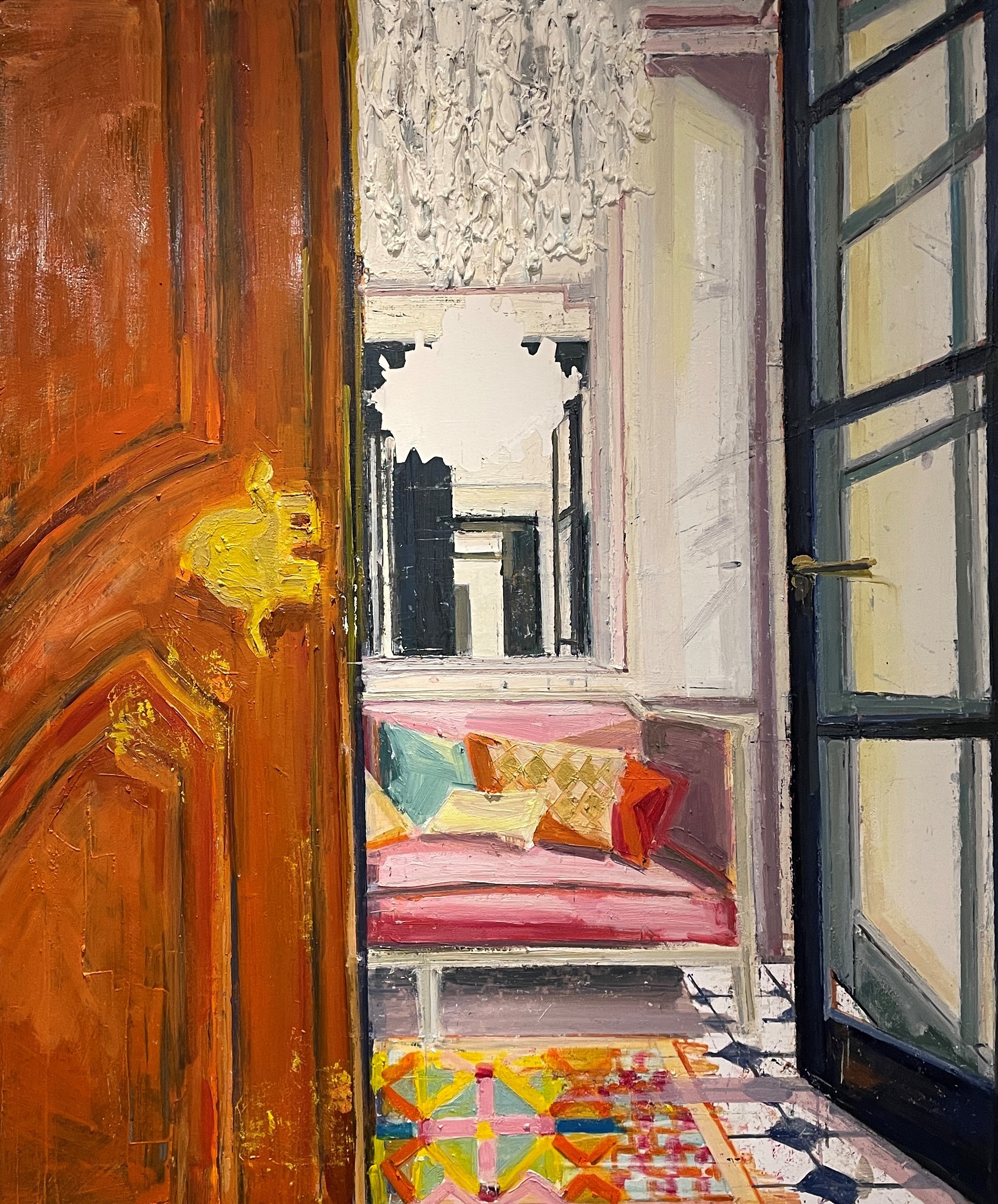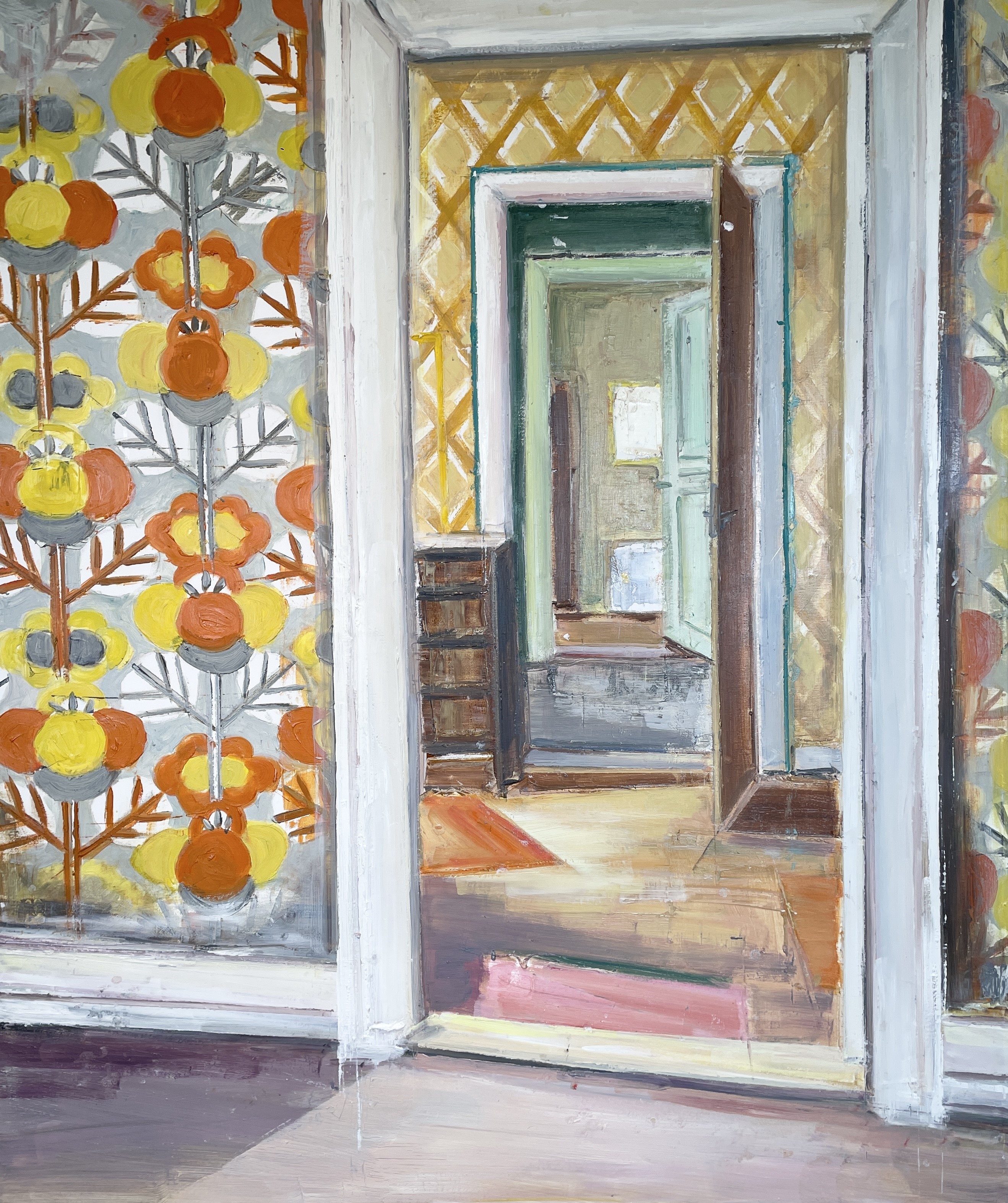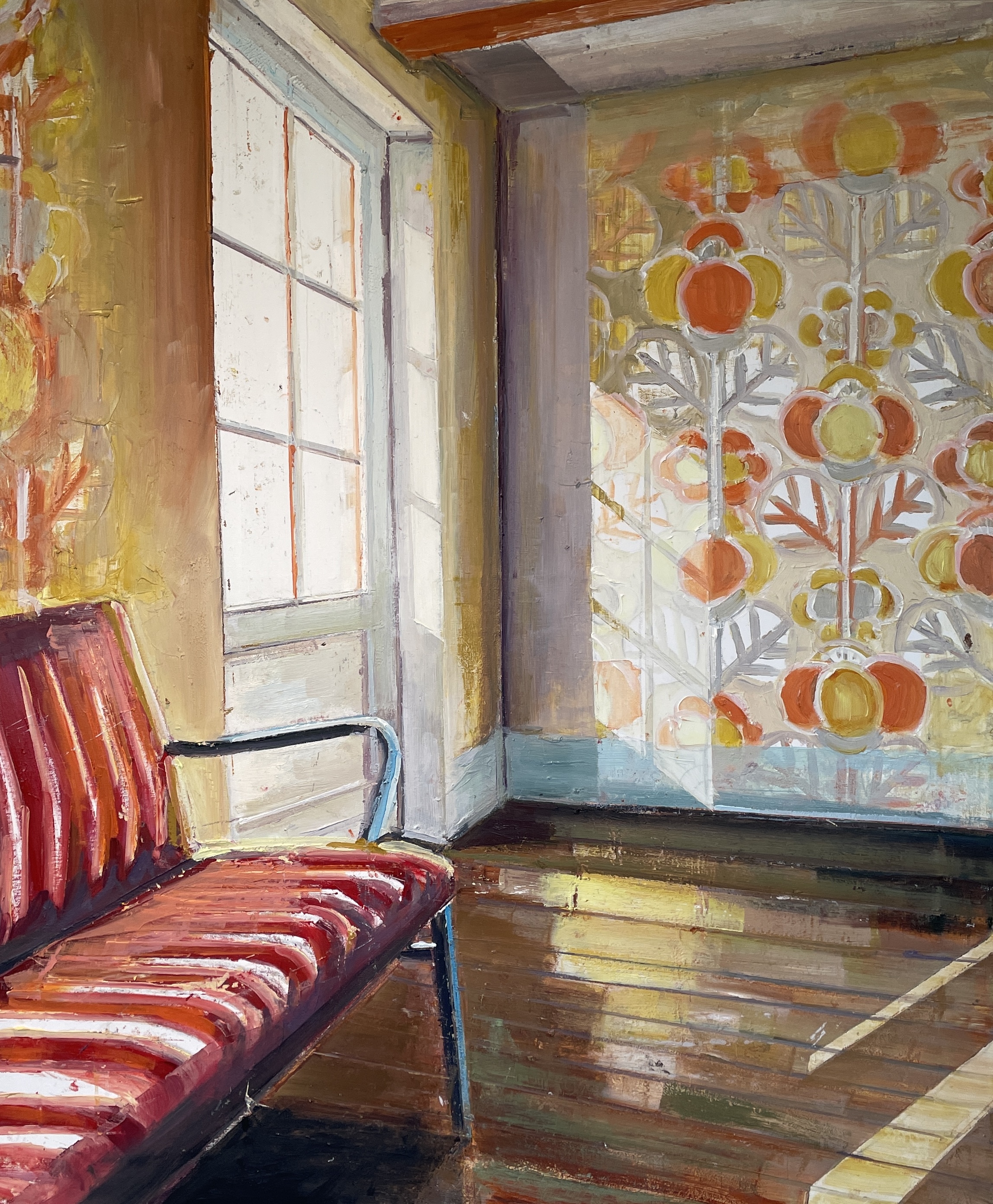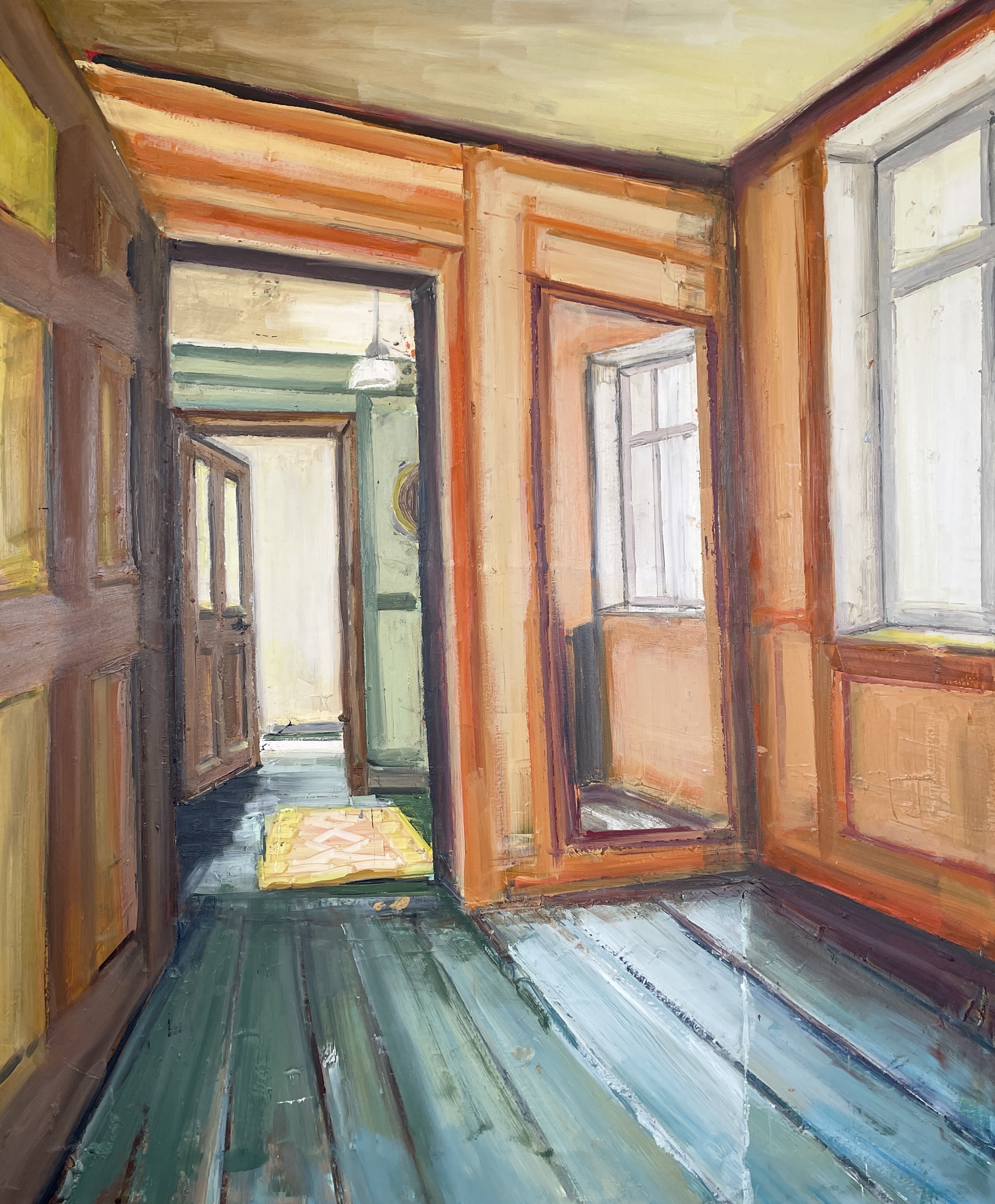 • THE ORANGE HALL, Olie på lærred, 100x140 cm, 2025, SOLGT
