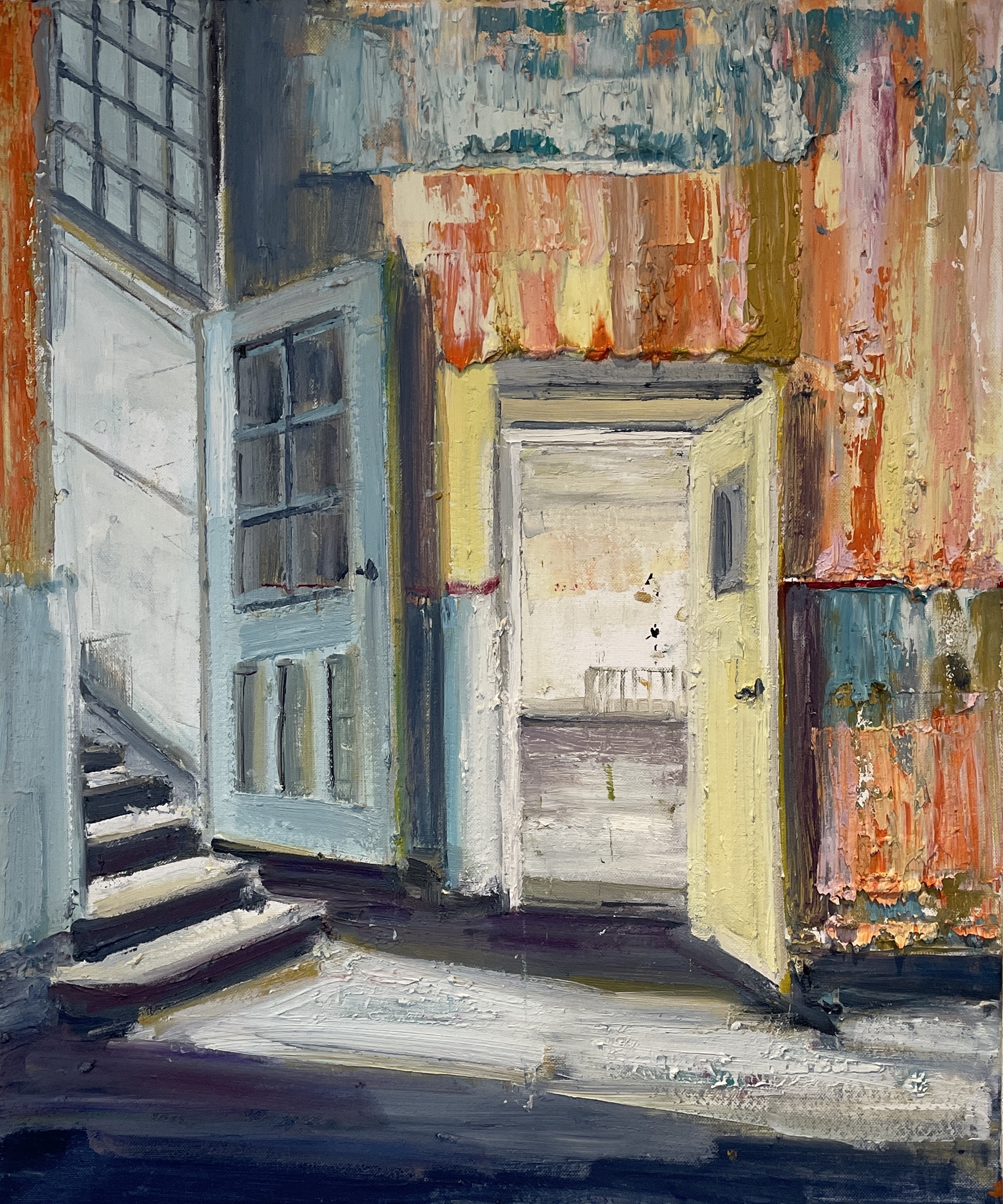 • AROUND THE CORNER, Olie på lærred, 120x100 cm, 2025, SOLGT