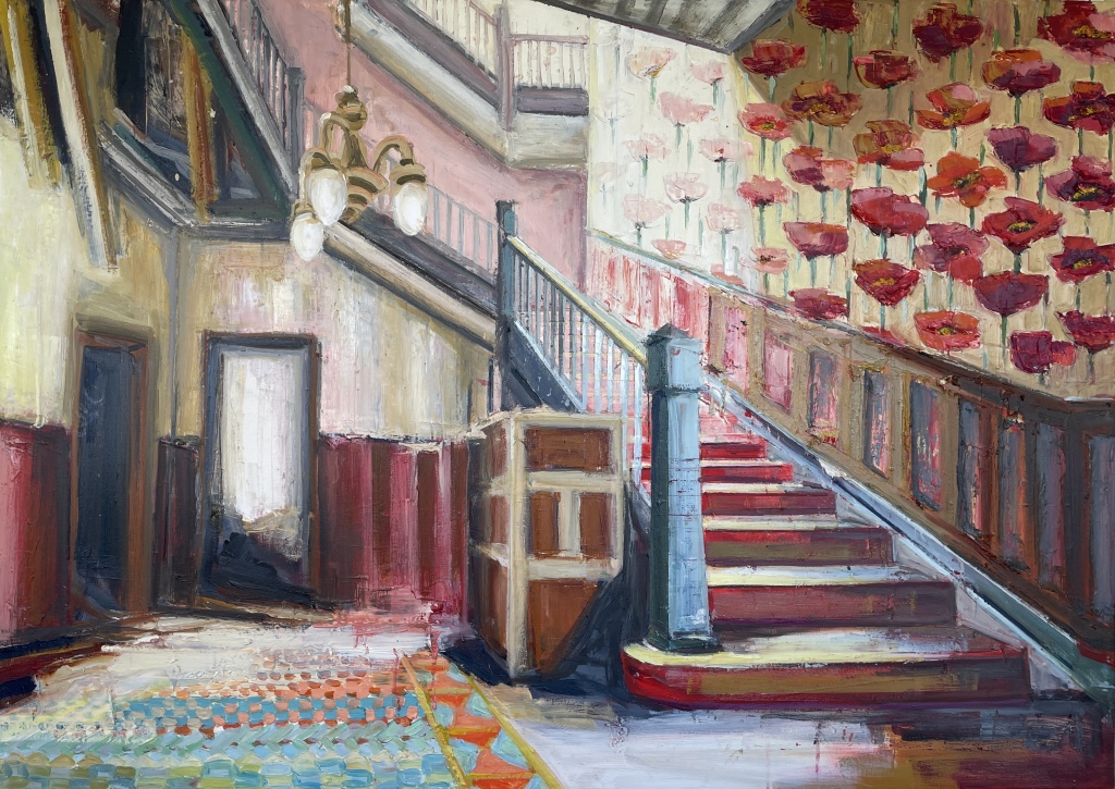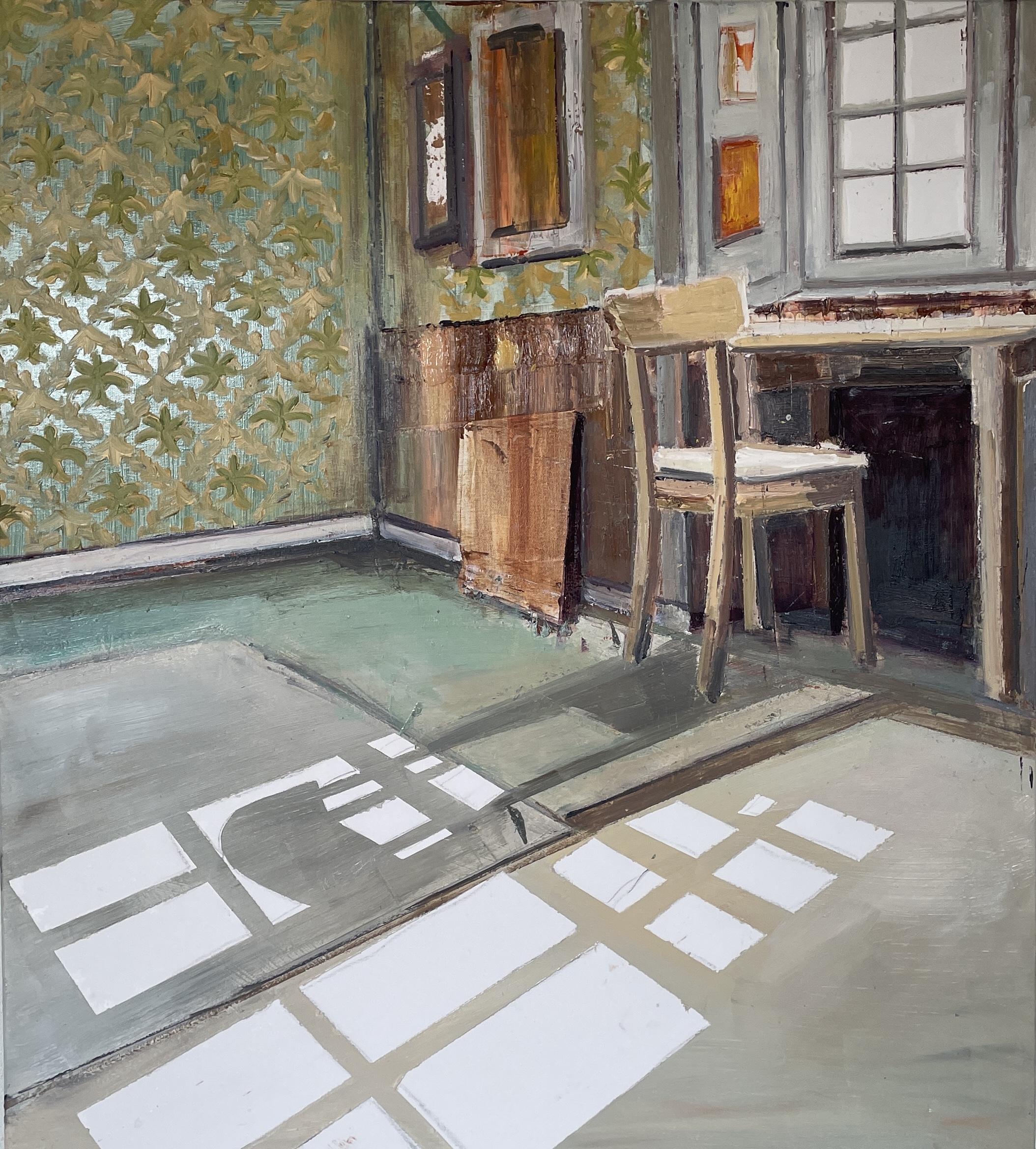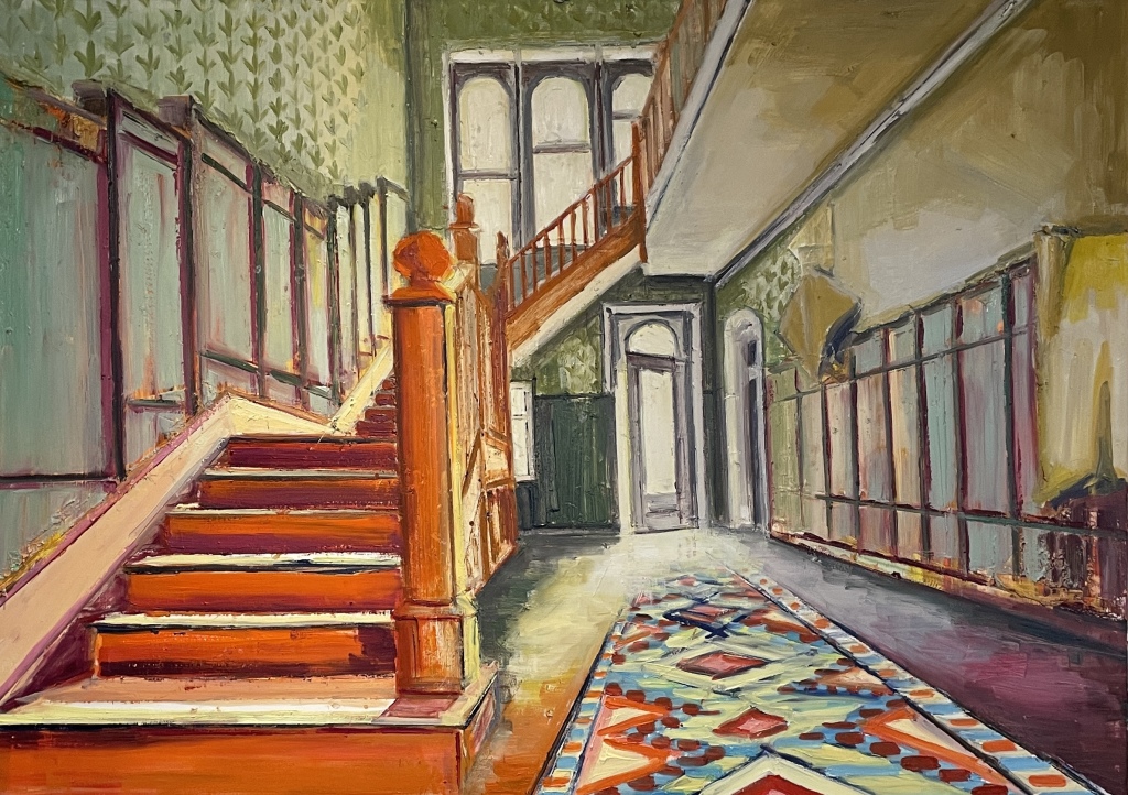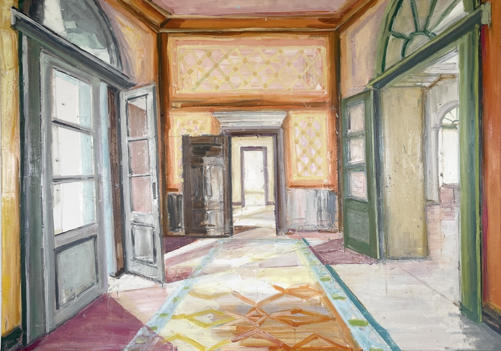 • THE ORDINARY HALL, Olie på lærred, 100x90 cm, 2023