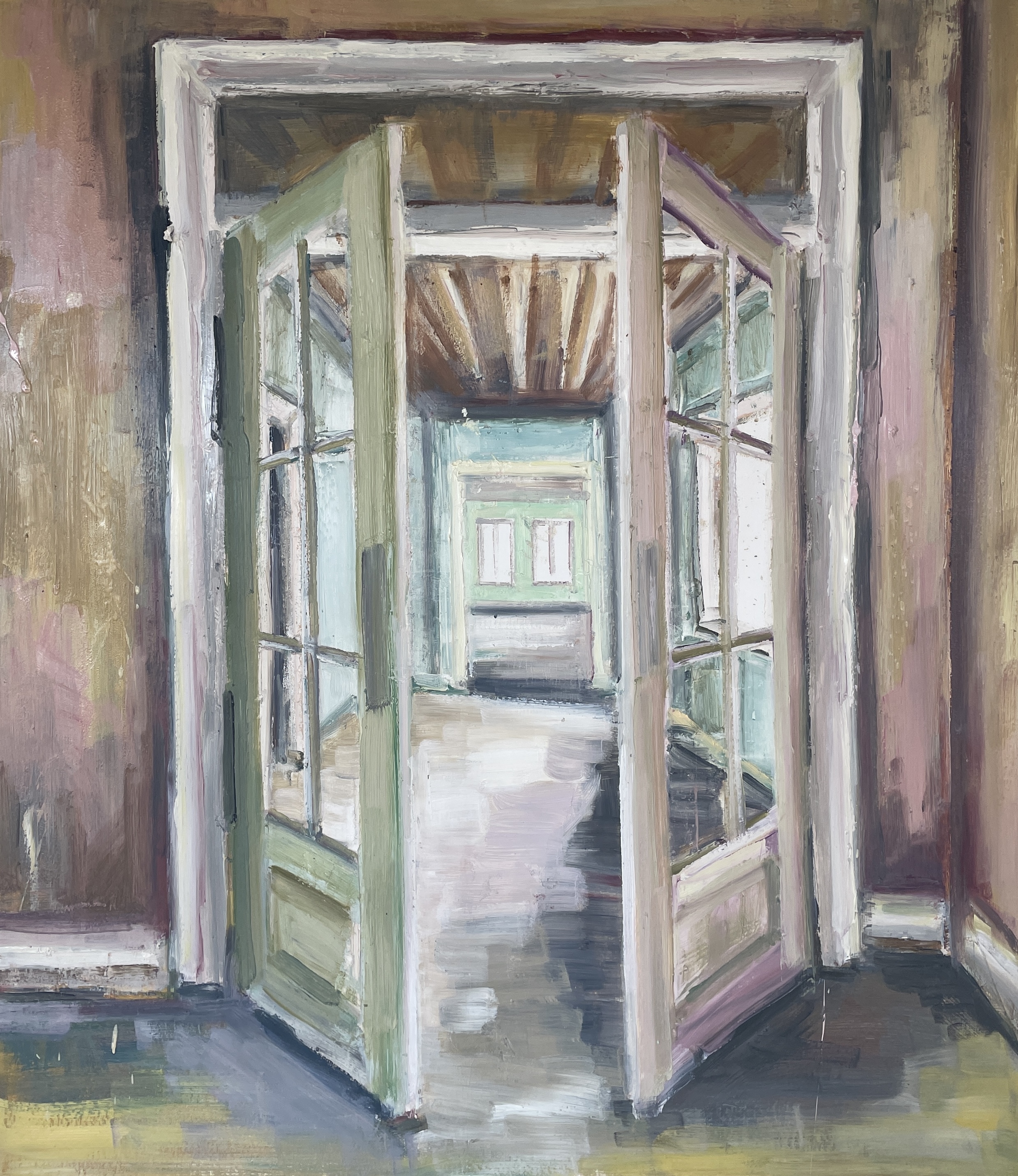 • ENTERING THE ROOM, olie på lærred, 60x50 cm, 2025, SOLGT