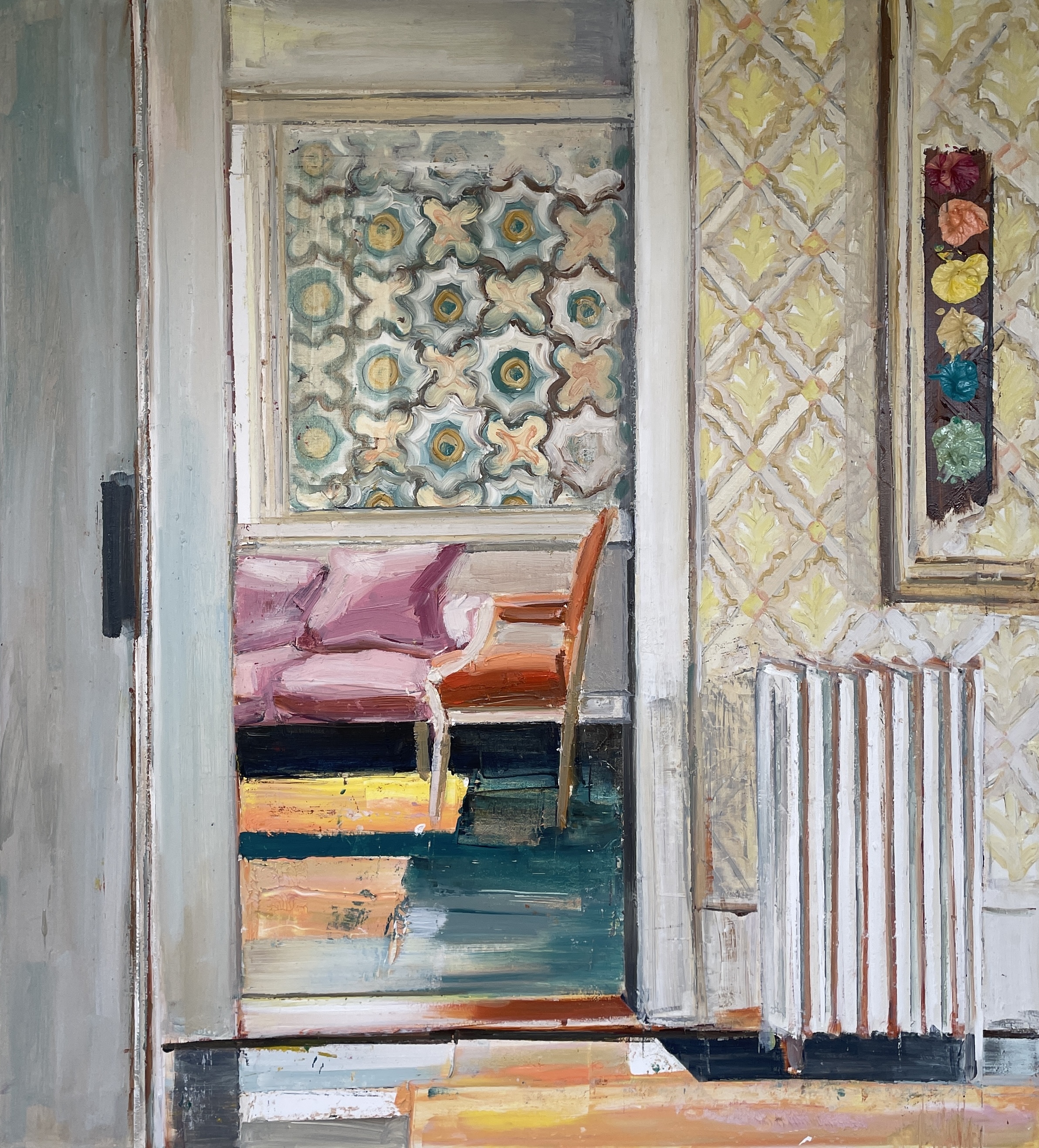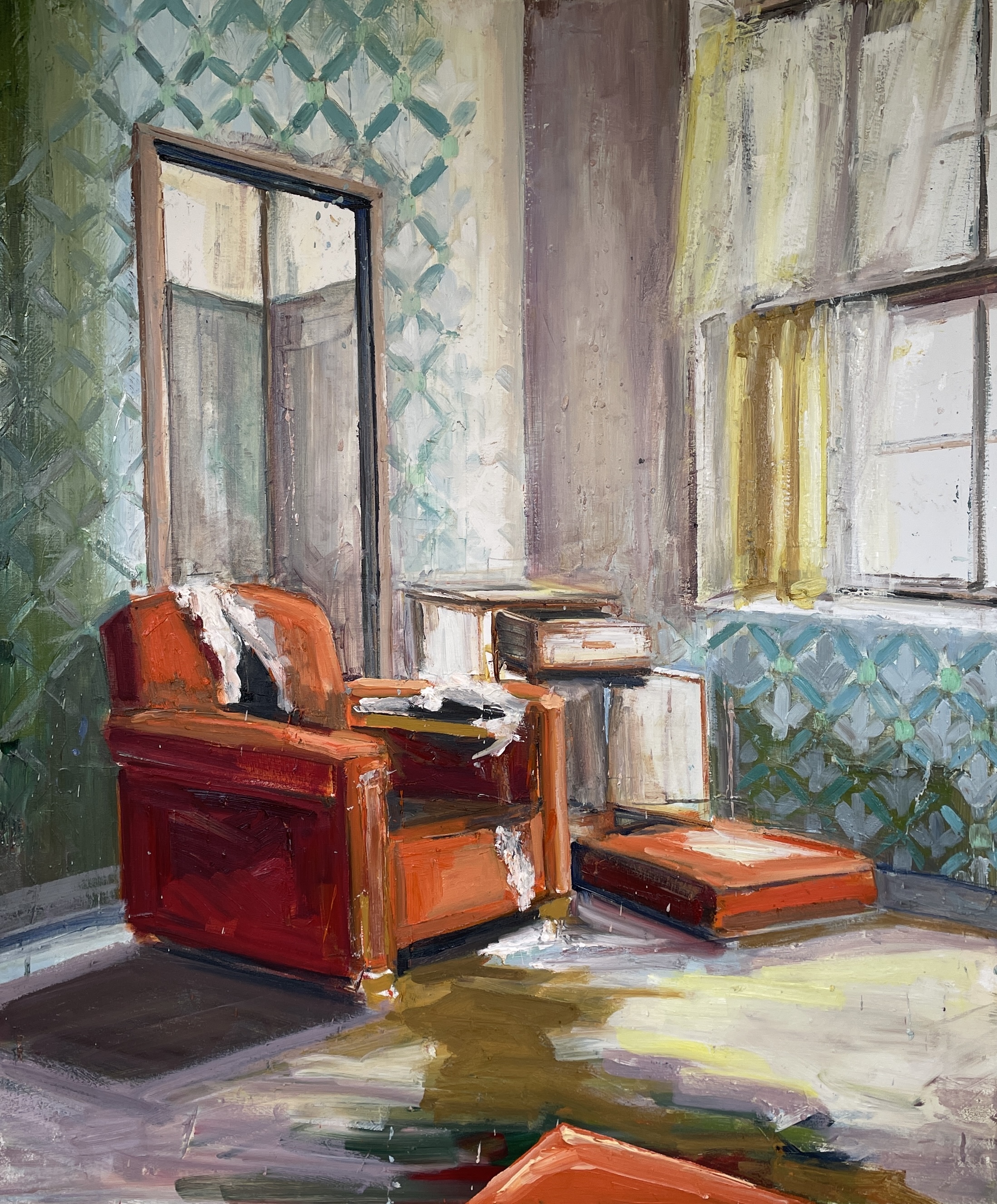 • THE ORANGE ROOM, Olie på lærred, 120x100 cm, 2025, SOLGT