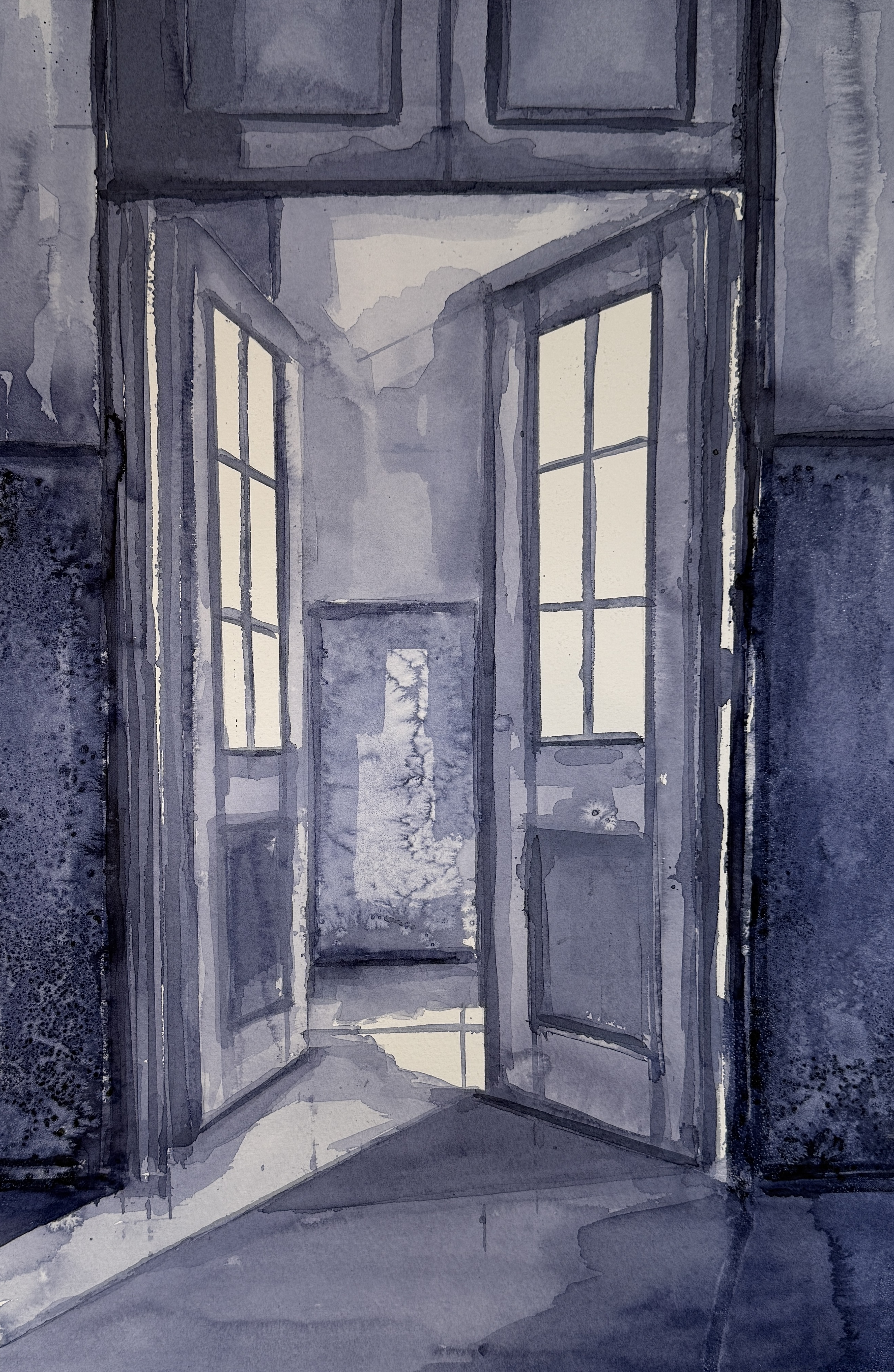 THE DOORWAY, Indian Ink on paper, 70x50 cm indrammet, 2025 -